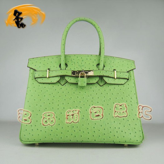 - 6088 愛馬仕女包 Hermes Birkin 鉑金包 Hermes手提包 鴕鳥紋皮金扣 綠色
