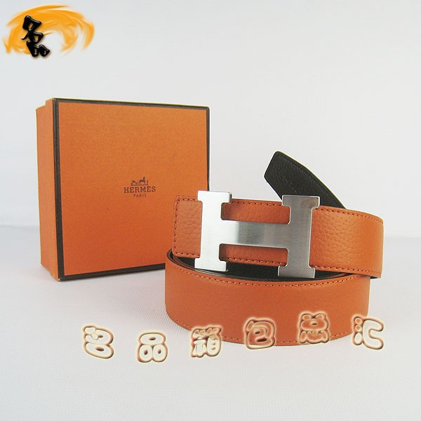 - 361 最新款愛馬仕皮帶 Hermes皮帶 Hermes腰帶 荔枝紋橙配黑 銀扣3.8cm