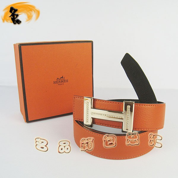- 449 最新款愛馬仕皮帶 Hermes皮帶 Hermes腰帶 荔枝紋橙配黑 金扣(帶鉆)3.8cm