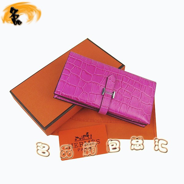 - H005 Hermes錢包 愛馬仕經(jīng)典H扣兩折錢包 Hermes長款錢包 鱷魚紋女士錢夾 桃紅色