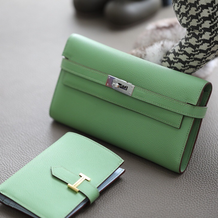 • Hermes錢包 愛(ài)馬仕Kelly錢包 純手工頂級(jí)Epsom皮 牛油果綠