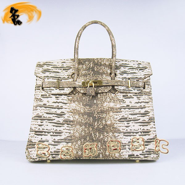- 6089 Hermes手提包 愛馬仕女包 Hermes Birkin 鉑金包 蜥蜴紋(35) 米白色金扣