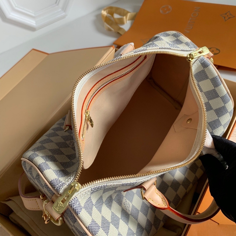 N41373 LV Speedy 30 手袋(配肩帶)Damier Azur 涂層帆布枕頭包