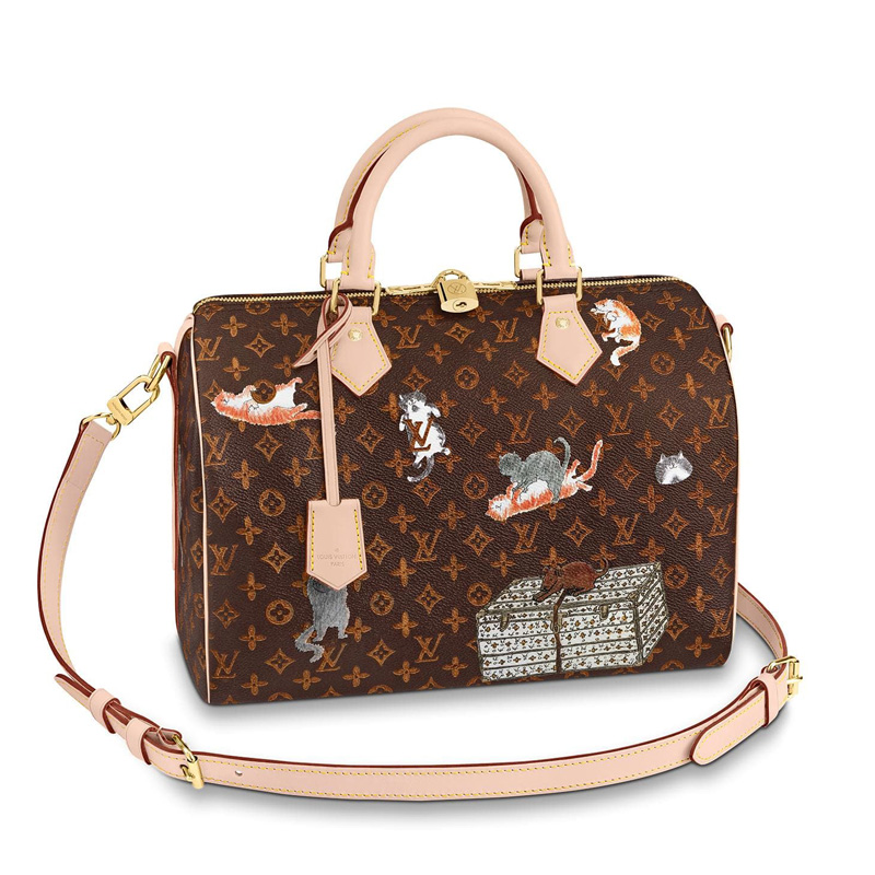 - 詳細介紹:此款來自2019早春系列的Speedy手袋由女裝藝術總監(jiān)Nicolas Ghesquière與造型師Grace Coddington聯(lián)手打造,以Catogram花紋向二人的愛寵致敬。采用路易威登經(jīng)典Monogram帆布材質,飾有活潑可愛的貓犬圖案。風格休閑,功能實用,日常造型的理想配飾。