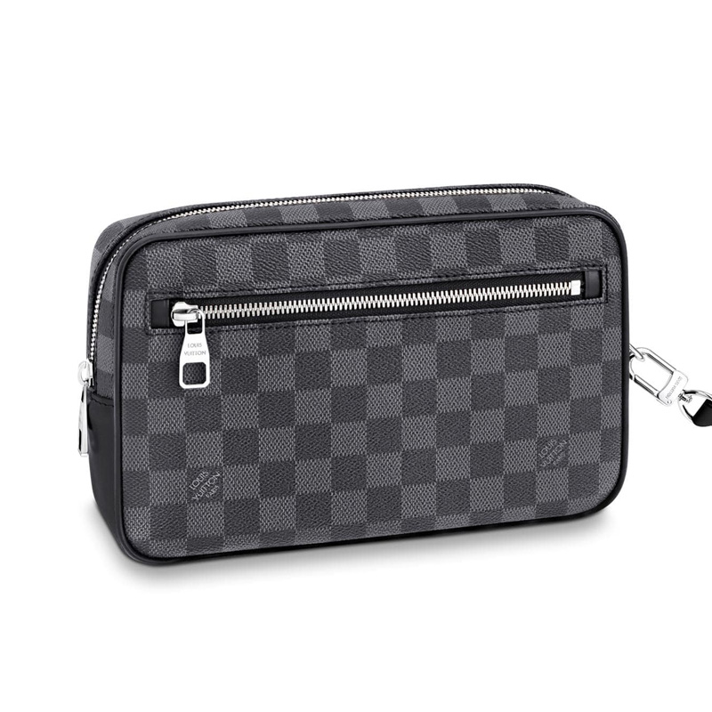 • 詳細介紹:寬敞的拉鏈開口、豐富的內外口袋與插槽帶來極強的實用性,此款采用標志性Damier Graphite涂層帆布材質的Kasai手包既可夾于手臂內側,亦可通過包帶系于腕間。