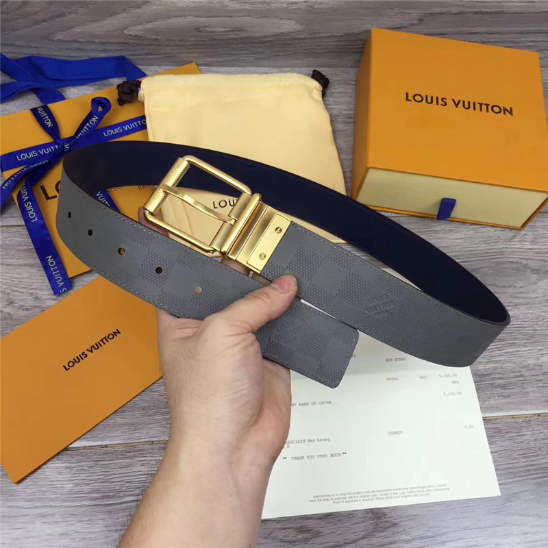 - LV路易威登 皮帶 海外原單品質 專柜新包裝 進口皮 手工縫線 啡色金扣