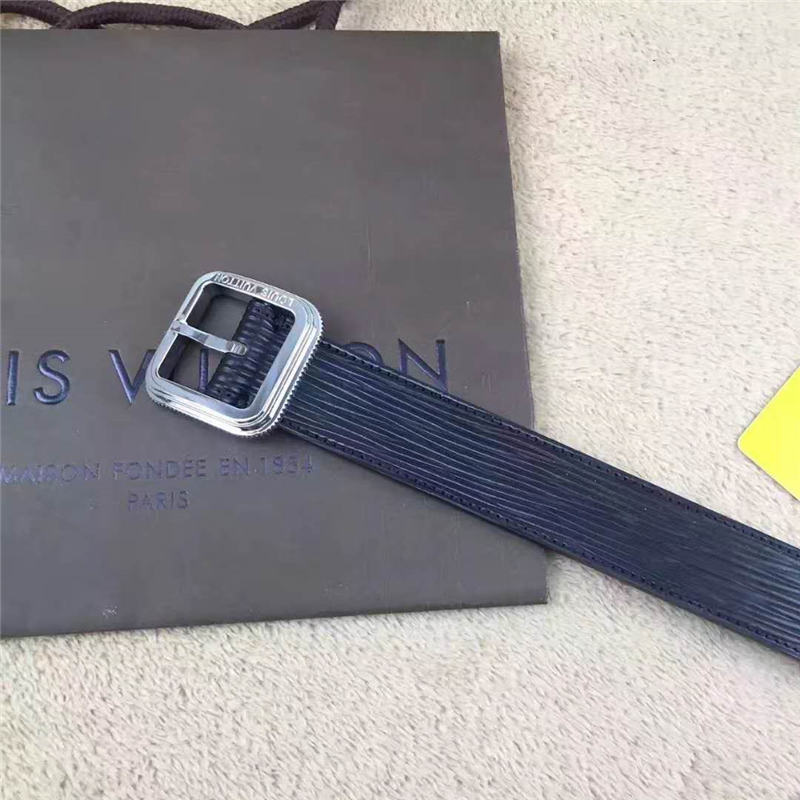 • LV 路易威登 專柜新品 LV水波紋 牛皮皮帶 金屬針扣 女士皮帶 藏藍色