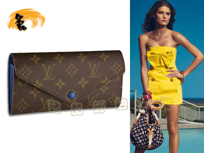 - M60164 專柜熱銷新款 LV老花錢夾 LV錢包 LV女包 LV長款錢包 啡配藍色