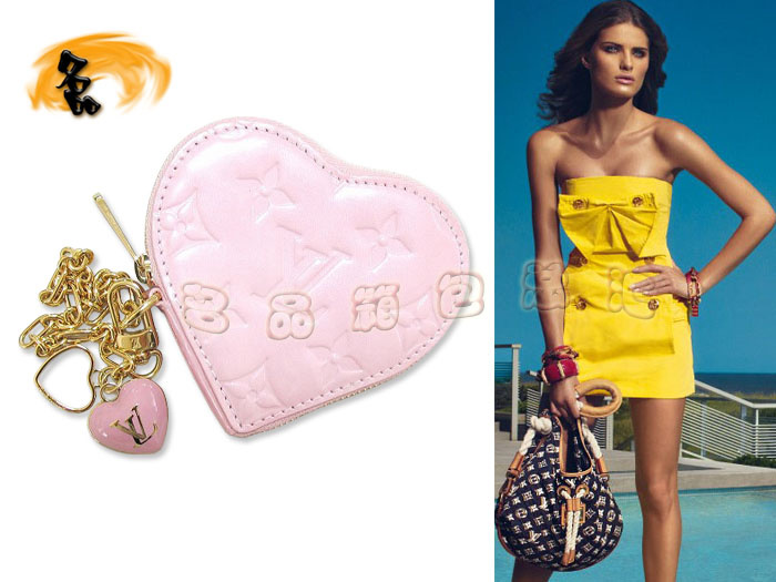 - M91431 LV零錢包 LV漆皮包 LV亮皮包 愛心 心形 LV壓花女士硬幣包 粉紅色