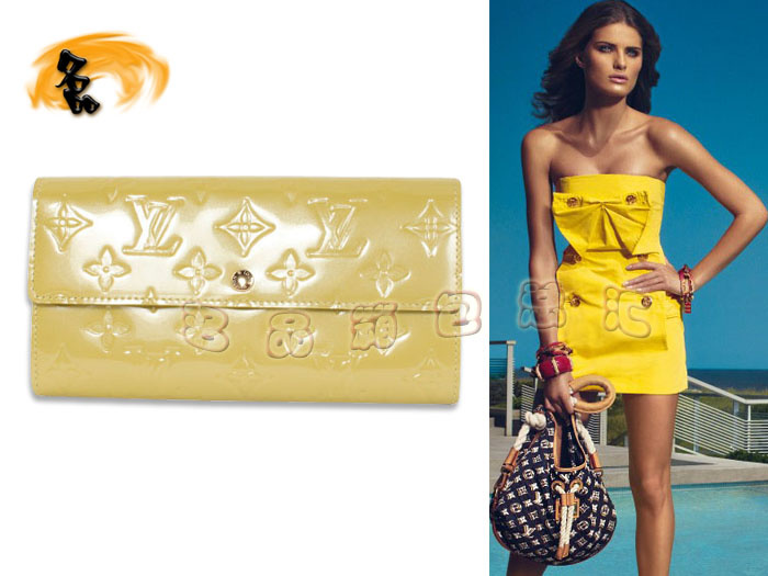 - M91532 LV長款錢夾 LV漆皮女士錢包 LV亮皮包 LV壓花女包 LV卡包 黃色
