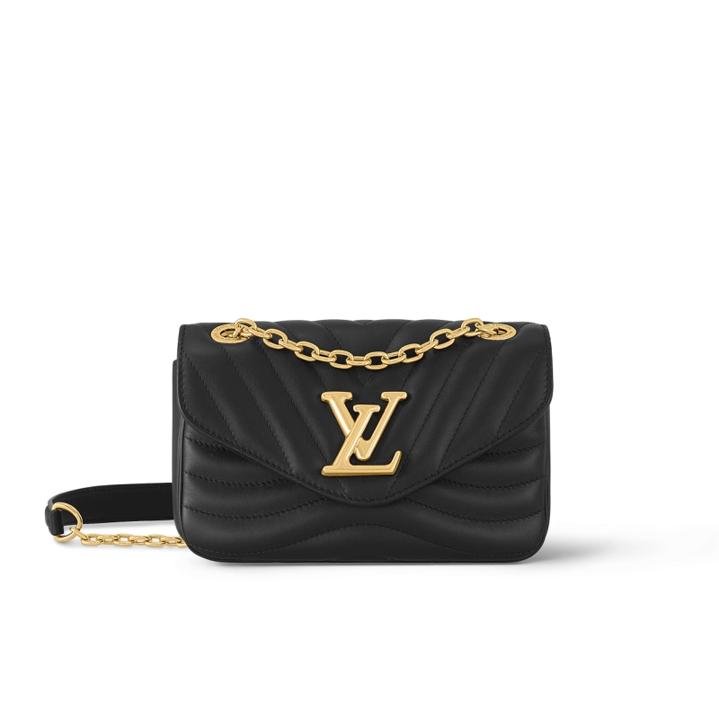 M20687 LV NEW WAVE 小號鏈條包 絎縫牛皮單肩斜挎包 黑色