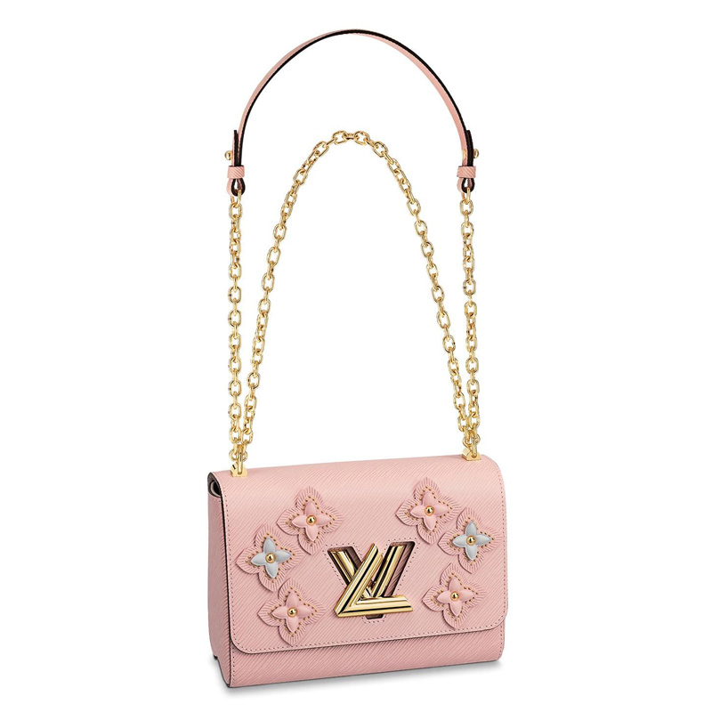 • M53851 LV TWIST 中號手袋 Flower Tinsel系列印花女包 LV鏈條包 粉色