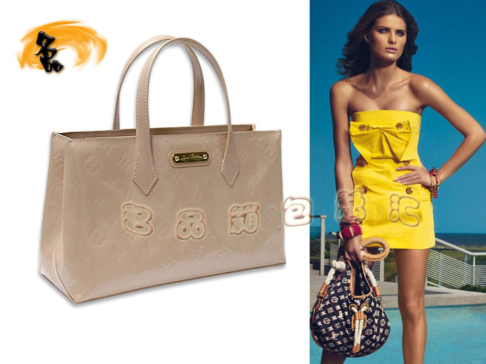 - M91642 1:1品質 LV手提包 LV最新款時尚壓花女包 OL職業 LV漆皮包 杏色