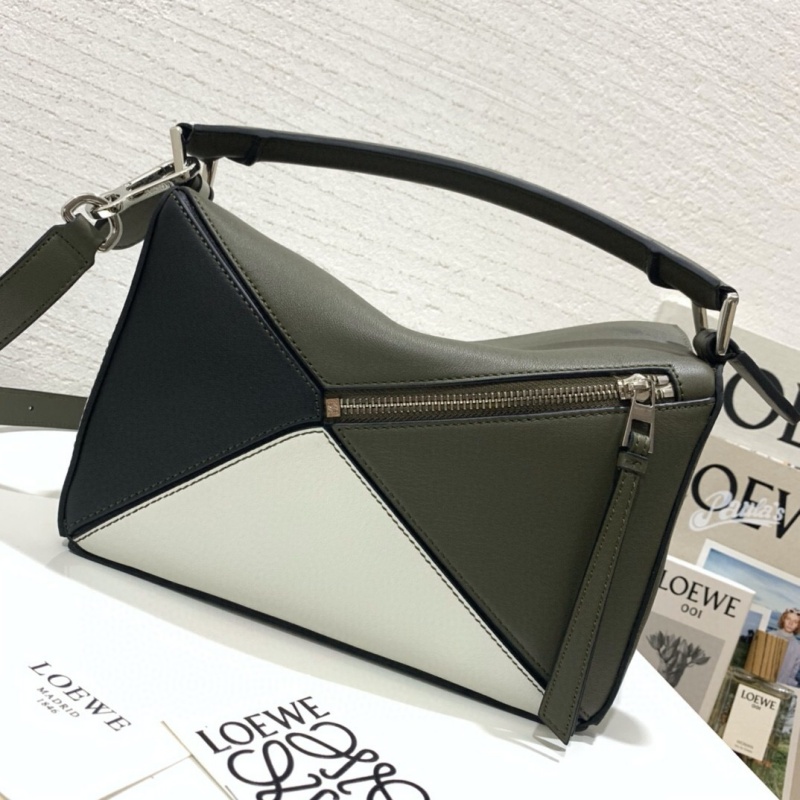 322 LOEWE羅意威 Puzzle small Bag 羅意威小號幾何包 軍綠配白色
