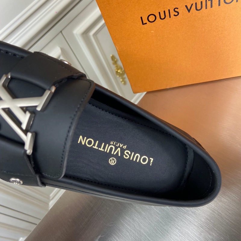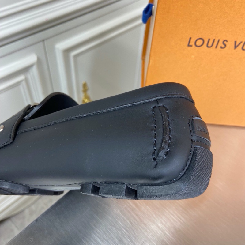 • 結構:平紋小牛皮 黑色 金屬LV配飾 手工縫制鞋面,手工漆繪染邊(每雙制作耗時1小時) 鞋舌與鞋幫一體式構造 意大利制造