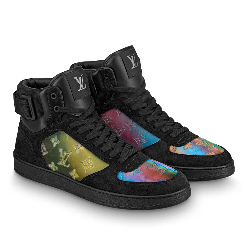 • 結構:彩虹色 Monogram 織物和小牛皮制麂皮 黑色 橡膠外底 飾帶印有路易威登標識 意大利制造