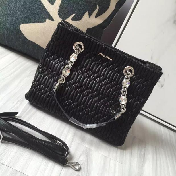 Miumiu 官網經典款包包 2017年新款鉆石鏈皺褶羊皮手提包