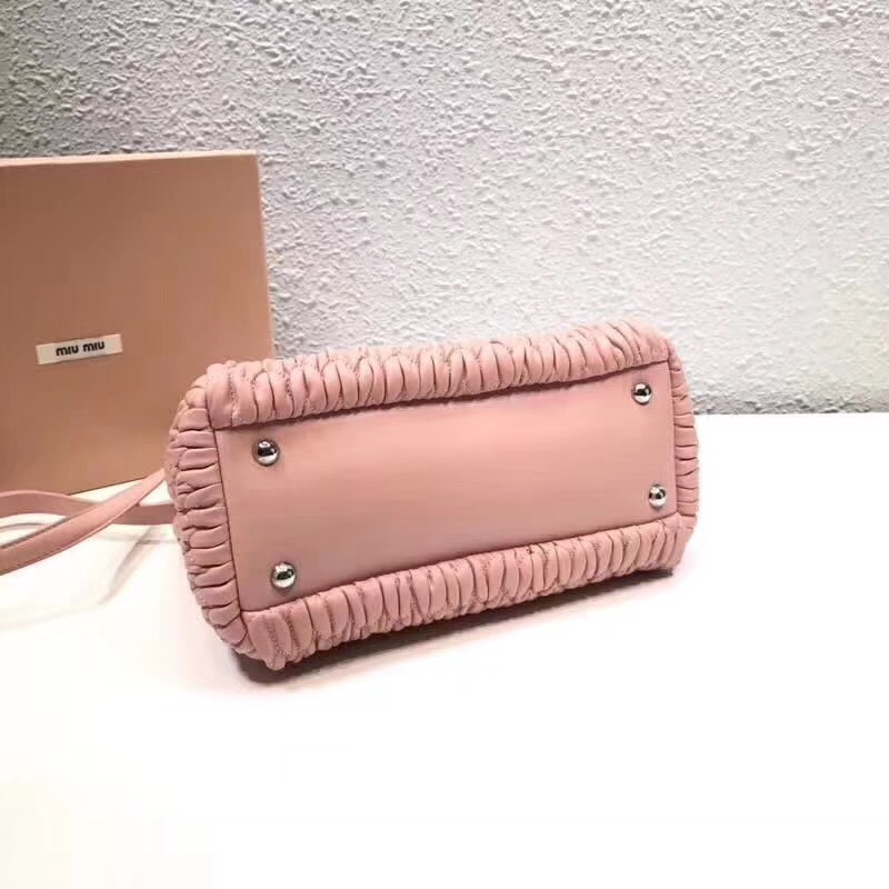• 5BA067 MIUMIU繆繆 專柜新款 褶皺羊皮 小號 水晶鏈手提包 粉色