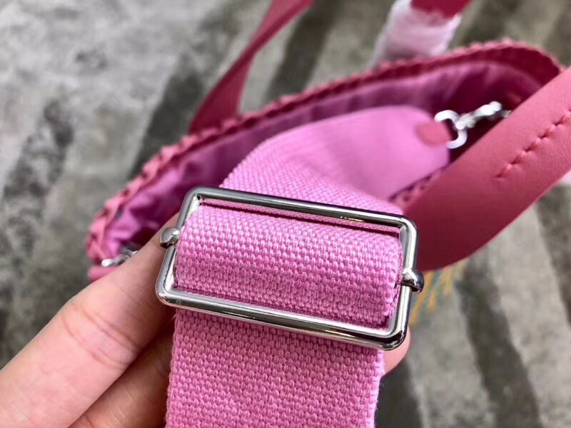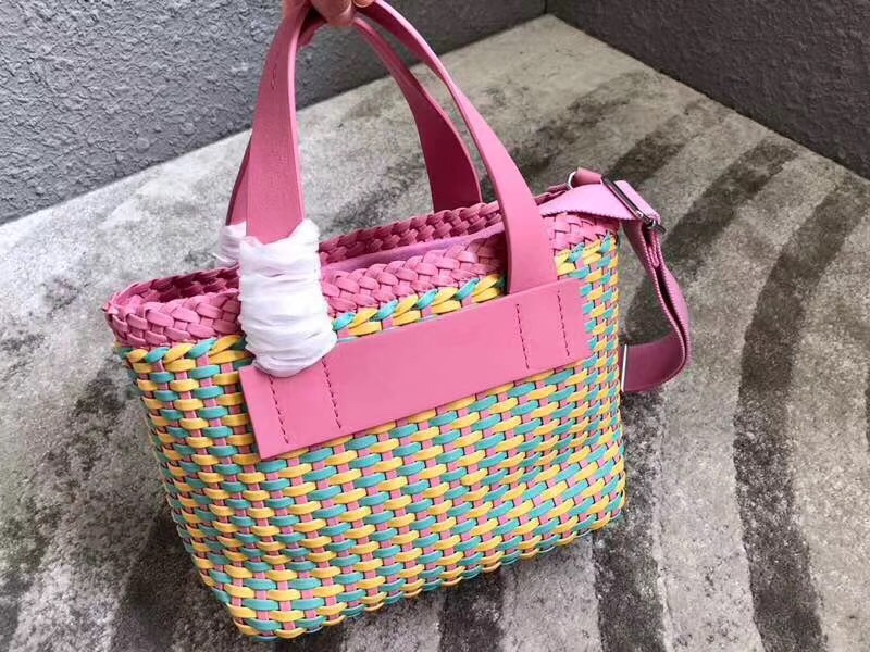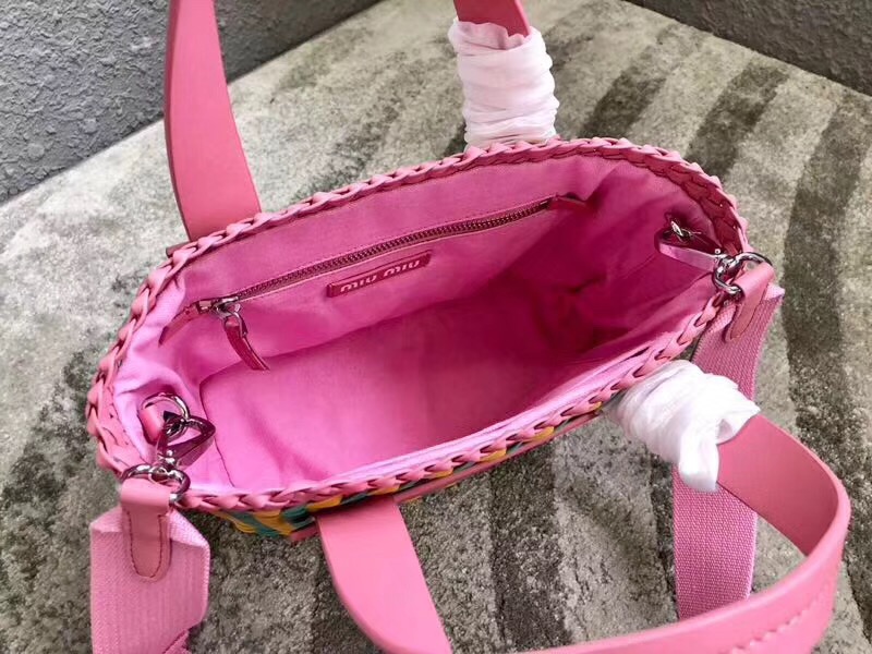 5BA077 MIUMIU專柜新款 人造皮革 編織手袋 手提 菜籃子包 粉色