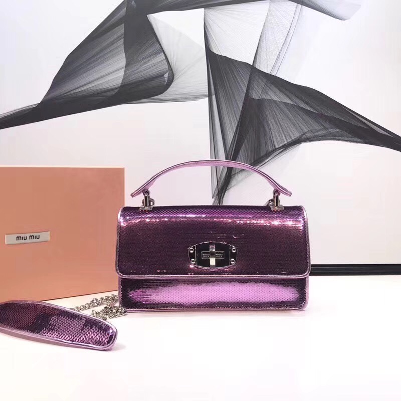 5BD115 MIUMIU專柜新款 手工亮片 旋轉鎖 翻蓋鏈條包 紫色