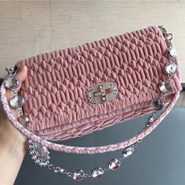 5BD233 MIUMIU繆繆 專柜新款 天鵝絨 仿水晶鉆石 鏈條包 粉色