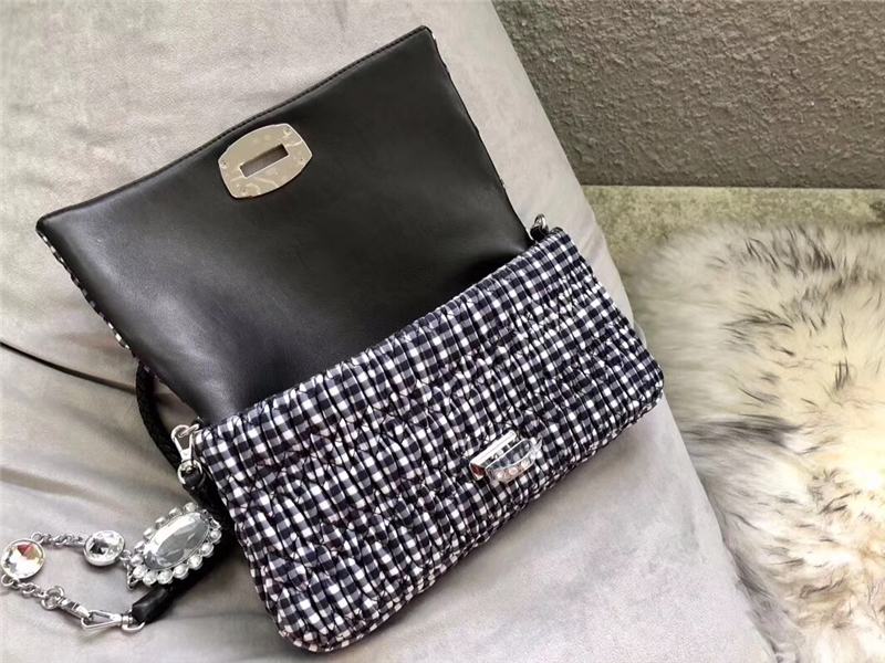 5BD233 MIUMIU繆繆 專柜新款 提花壓紋 鉆石鏈條包 黑格子