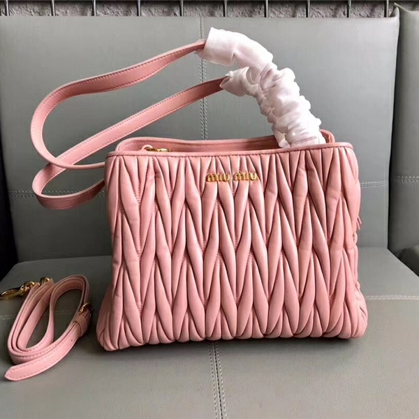 5BG103 MIUMIU繆繆 專柜新款 進口羊皮 三層手提斜跨包 粉色