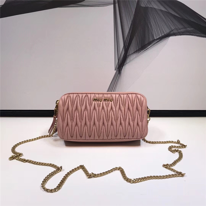 5BH009 MIUMIU繆繆 專柜新款 雙拉鏈 迷你 鏈條肩包 粉色