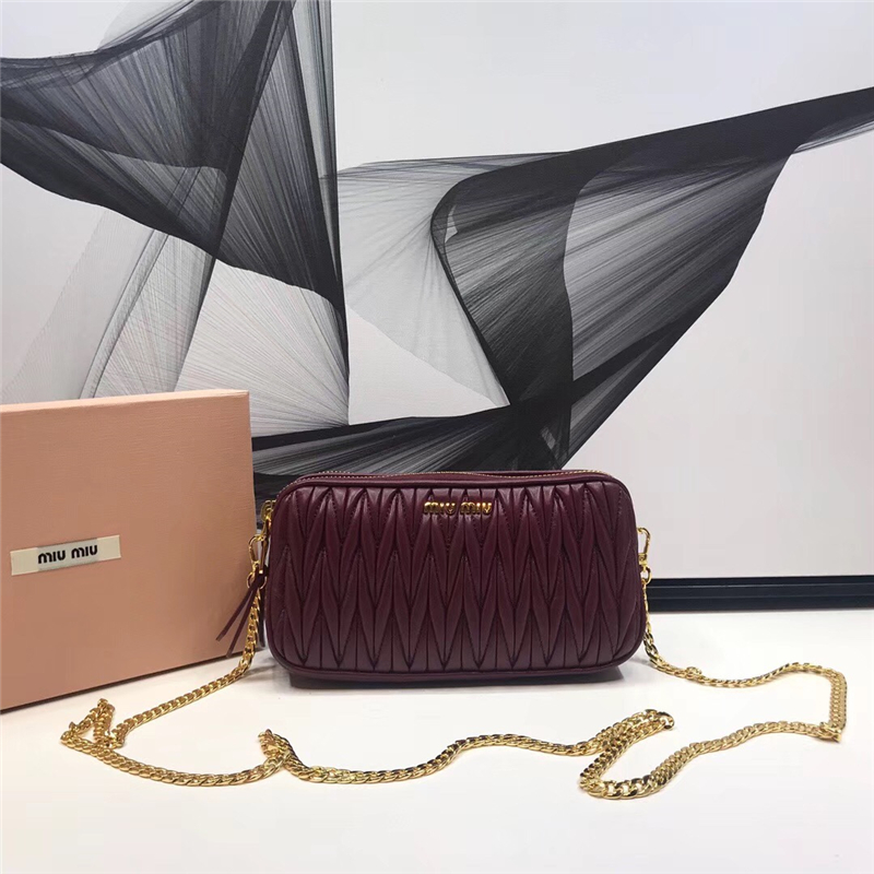 5BH009 MIUMIU繆繆 專柜新款 雙拉鏈 迷你 鏈條肩包 酒紅色