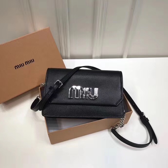 5BH077 MIUMIU 專柜新款 進口牛皮 鎖扣 大字母 翻蓋小包 黑色