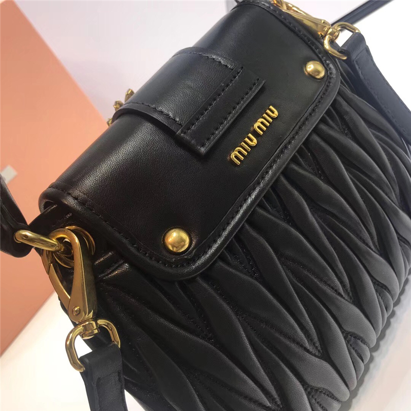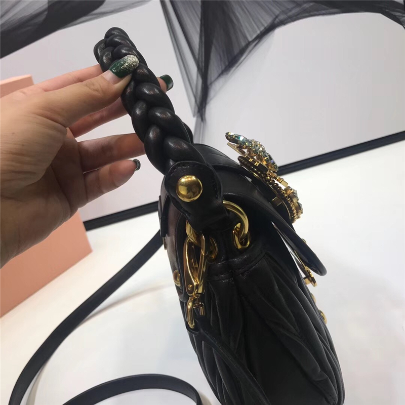 5BH111 MIUMIU專柜新品 小羊皮 小號 仿水晶裝飾帶扣 手提單肩包 黑色
