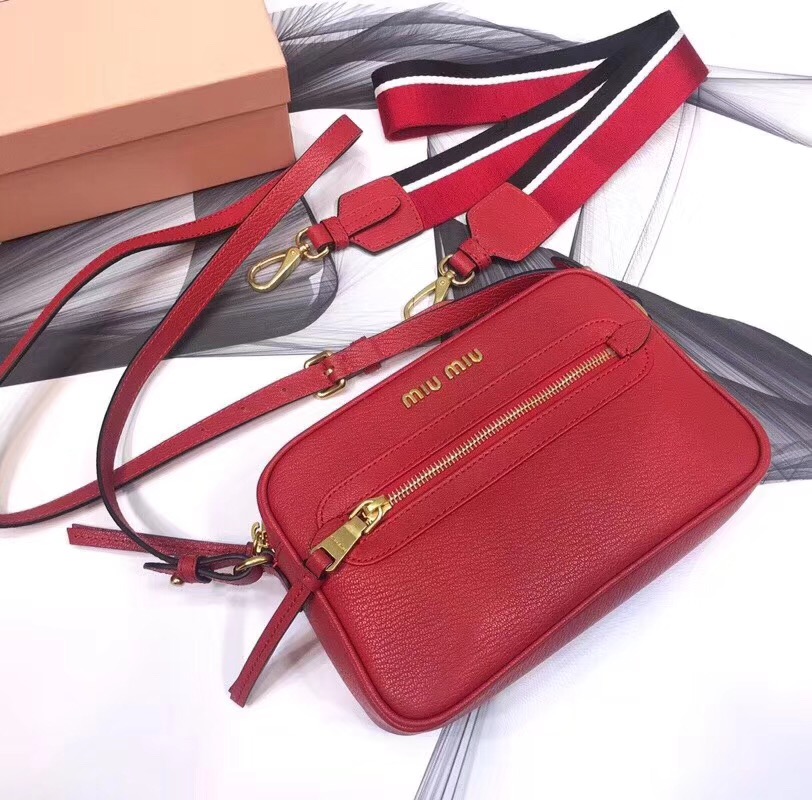 5BH116 繆繆專柜新款相機包 山羊皮 長方形 單肩斜跨包 紅色