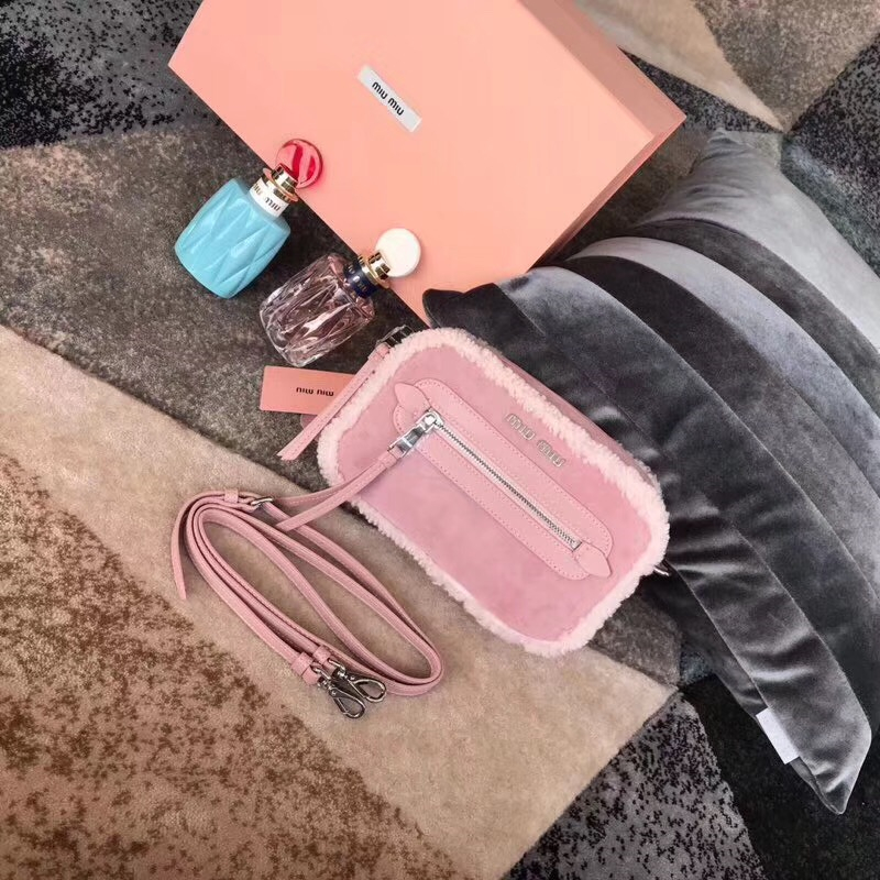 5BH118 MIUMIU繆繆 18秋冬 羊絨 時尚百搭 相機包 毛毛小方包 粉色