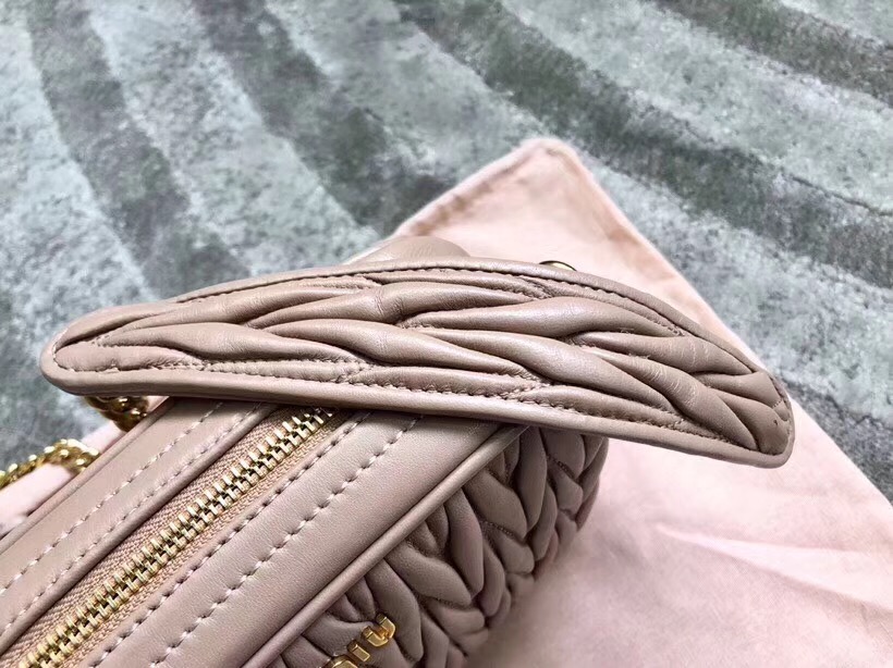 5BH118B MIUMIU專柜新款 褶皺小羊皮 相機包 杏色