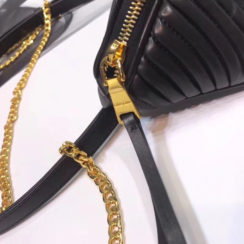 5BL010 MIUMIU專柜新款 腰包 褶皺綿羊皮 腰包單肩 兩用包 黑色