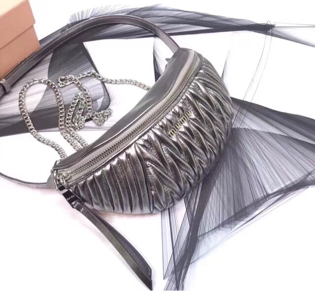5BL010 MIUMIU專柜新款 腰包 褶皺綿羊皮 腰包單肩 兩用包 槍色