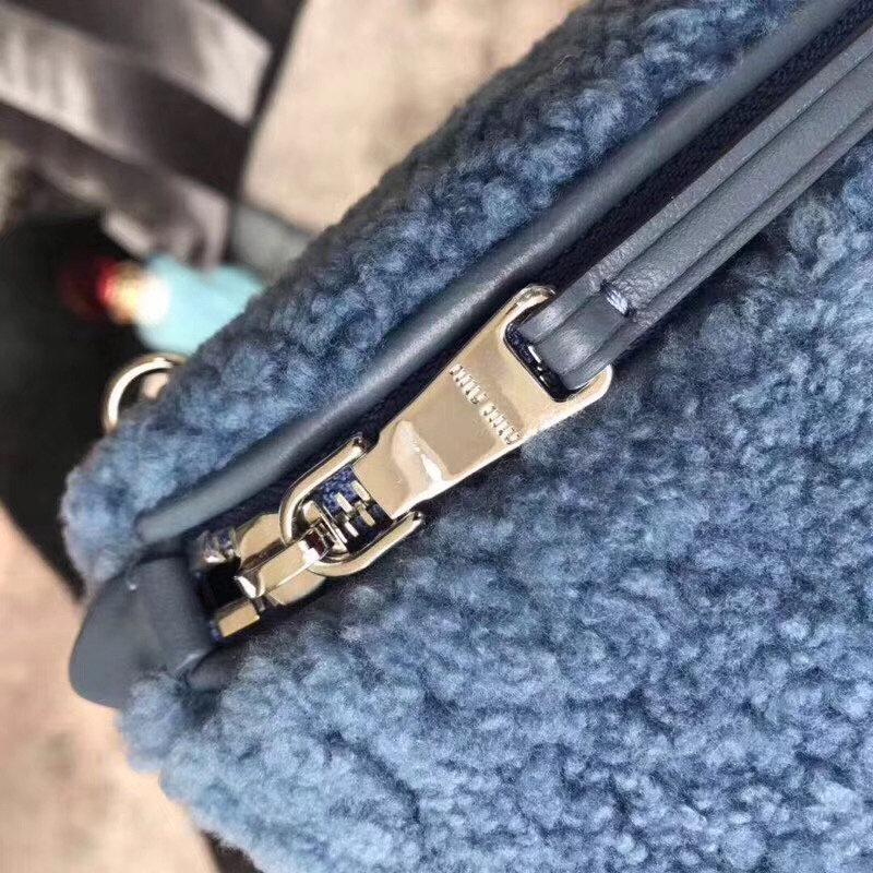 5BL010 MiuMiu女包 繆繆腰包挎包 羊羔毛手袋 小羊皮腰包 藍色