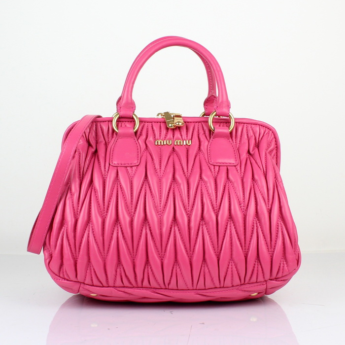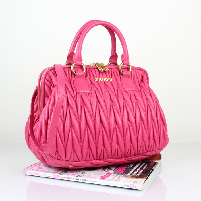 YA88037 MiuMiu 繆繆最新款 提花Top Handle 真皮手提袋 玫紅