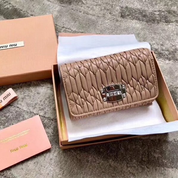 5MH015 MIUMIU 專柜新款 軟牛皮 三折 多卡位錢夾 卡其