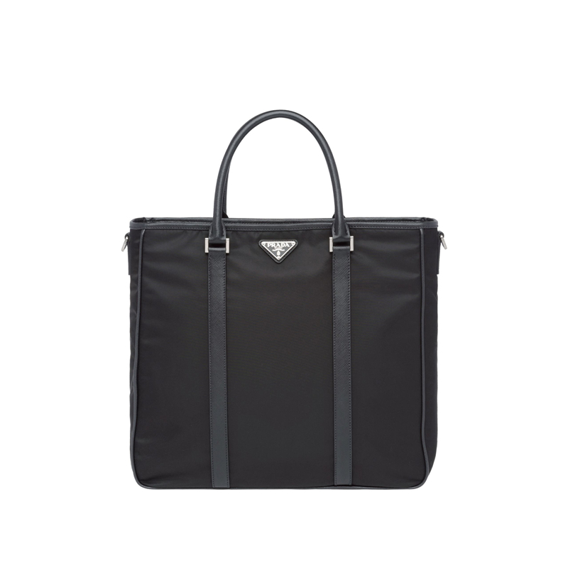 • 結(jié)構(gòu):拉鏈開合,多個內(nèi)袋,尼龍手提包配Saffiano皮革飾邊和手柄,拋光鋼質(zhì)配件,深色金屬拉鏈,內(nèi)部徽標標簽,外部三角形搪瓷銘牌,可拆卸調(diào)節(jié)尼龍肩帶