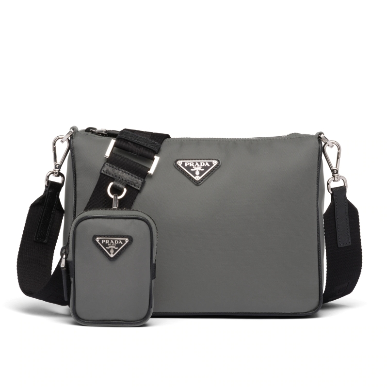 • 2VH113 Prada普拉達尼龍單肩斜挎包 三合一郵差包 灰色