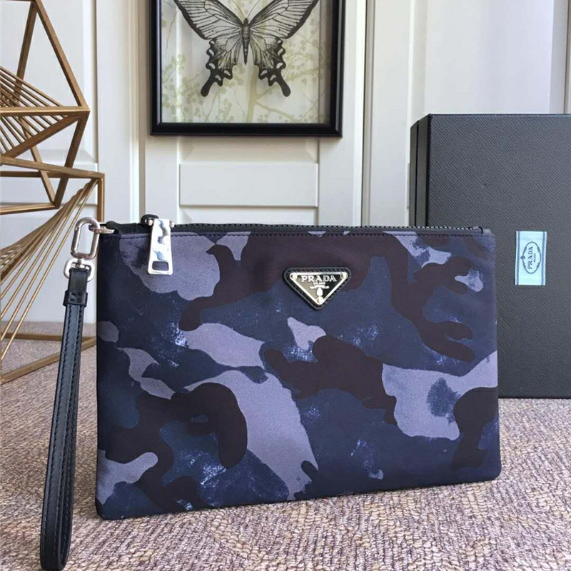 VR0051 Prada手拿包 普拉達進口十字紋牛皮男包 Prada手包 手夾包 藍色