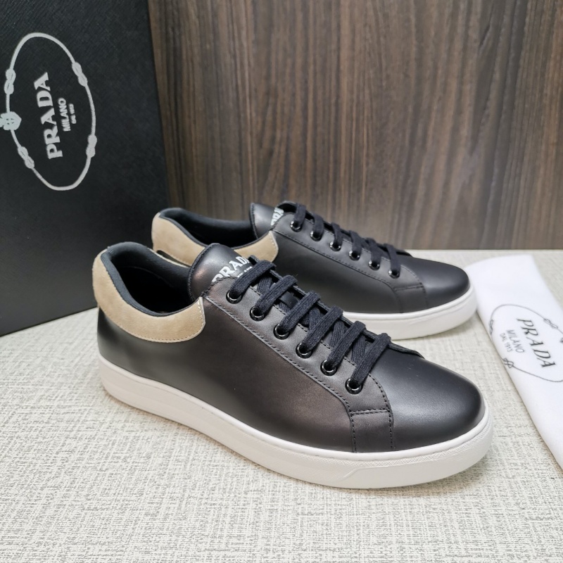 4E3544 Prada2020新款男鞋 Prada皮革運動鞋 普拉達休閑板鞋 黑色