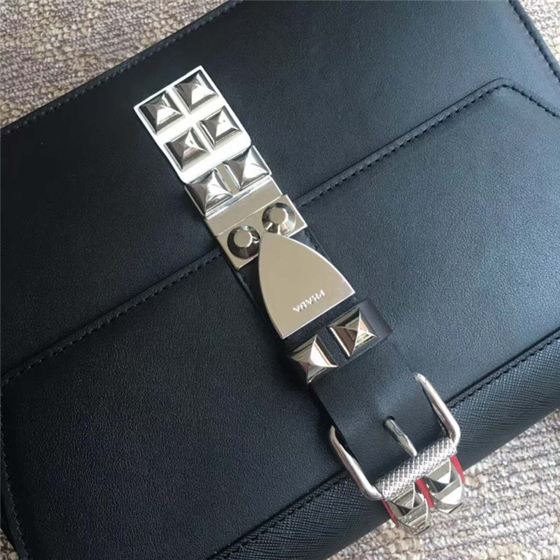 • 詳細介紹:2018年最新款式1BA179,采用進口小牛皮和Saffiana皮革,鉚釘皮革手柄,可拆卸的皮革肩帶,拋光的鍍鋼金屬五金,翻蓋與推鎖開合,兩條肩帶可拆卸,實用性強,又來一款爆款,165代工碼