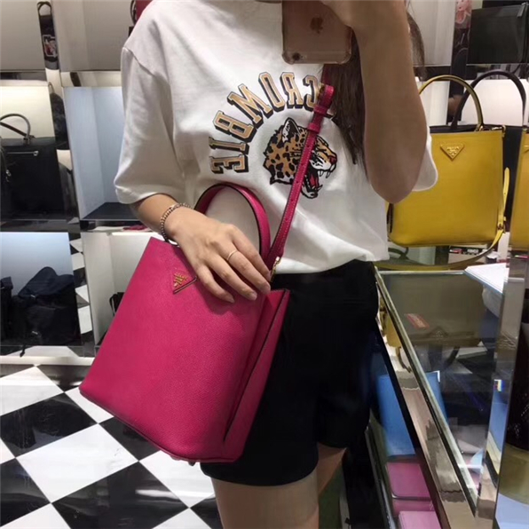 當前位置: 首頁>Prada|普拉達>Prada女包> 1BA212 Prada New Double 手袋 Prada手提包 普拉達水桶包 普拉達牛皮包 玫紅黑