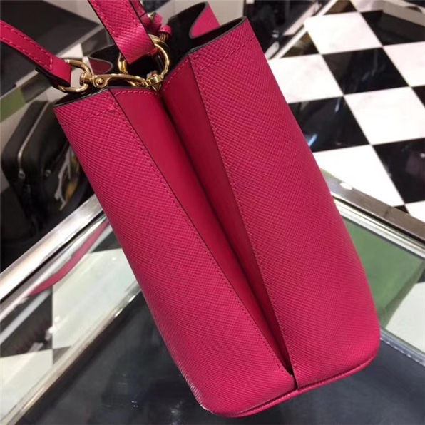 • 1BA212 Prada New Double 手袋 Prada手提包 普拉達水桶包 普拉達牛皮包 玫紅黑
