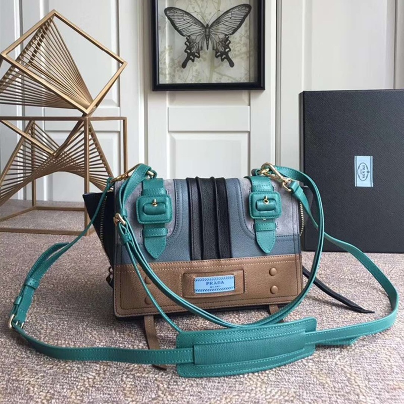 當前位置: 首頁>Prada|普拉達>Prada女包> 1BD093 Prada普拉達 Etiquette手袋 小牛皮 拼色手工 肩背包 肉桂色配孔雀藍