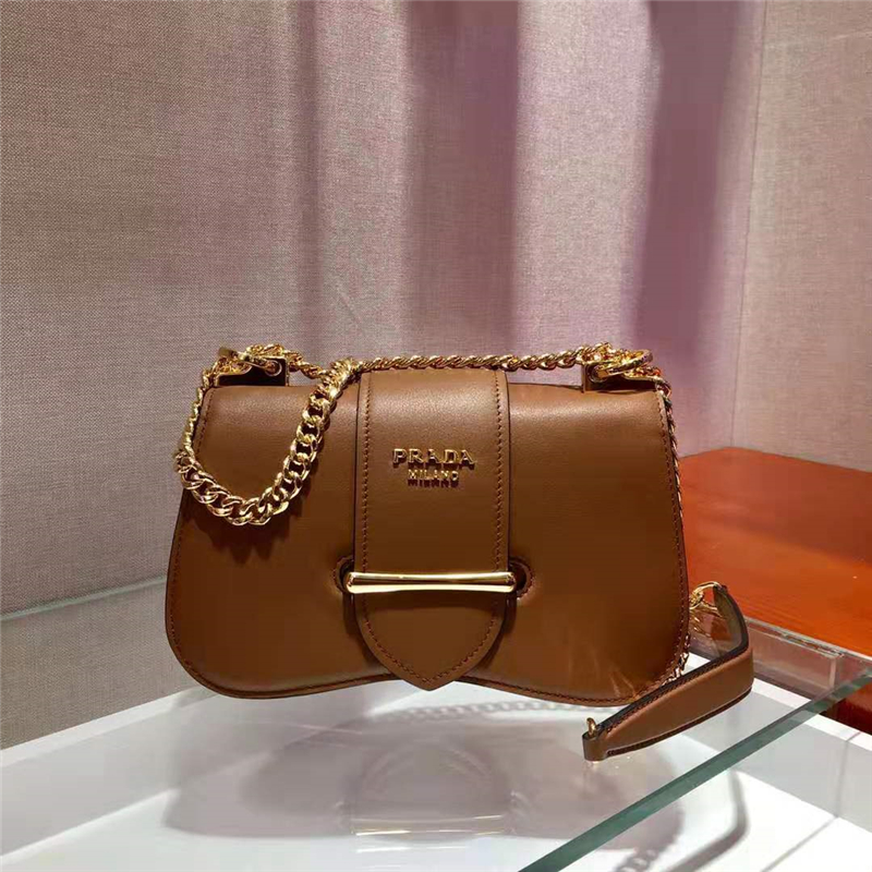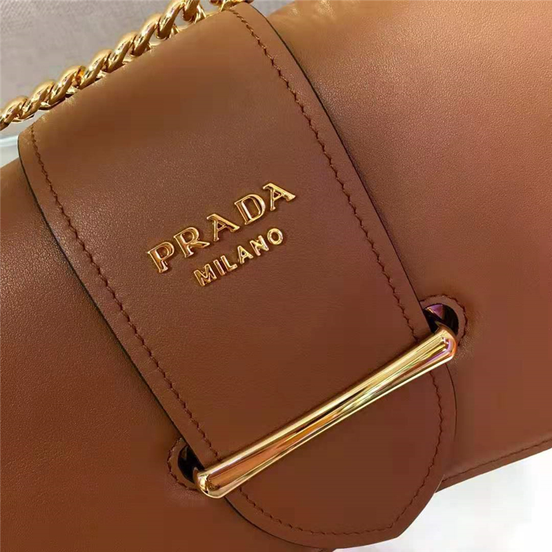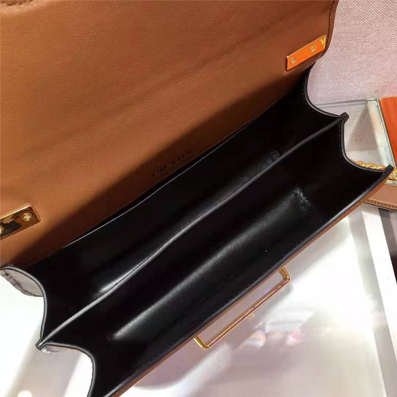 1BD184 Prada Sidonie女包 普拉達手袋 小牛皮 普拉達鏈條包 棕色