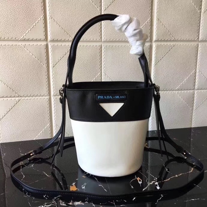 當前位置: 首頁>Prada|普拉達>Prada女包> 1BE015 Prada Ouverture女包 軟牛皮 普拉達手提包 Prada皮革水桶包 黑拼白