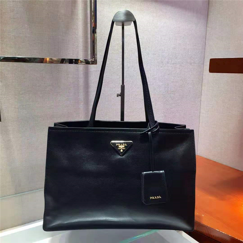 1BG122 Prada女袋 普拉達(dá)手袋 三角徽標(biāo) 摔紋牛皮手袋 Prada肩包 黑色